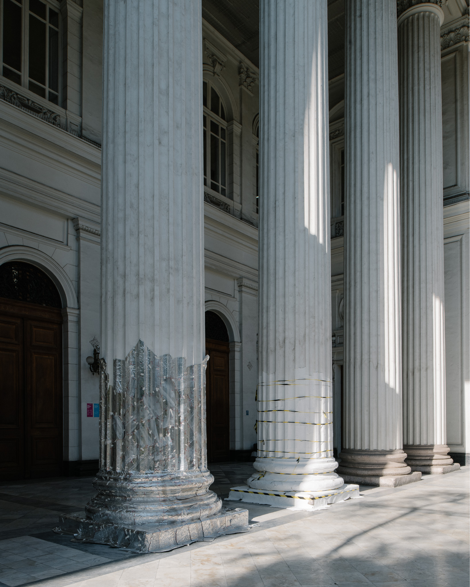 In 1948, with all its symbolic implications, a Roman column from Djemila, Algeria, was placed on a podium next to the grand staircase leading to the Faculty of Architecture in Montevideo, a project by architect Román Fresnedo Siri. Seventy-six years later, BARO moves the memory of a neoclassical column from the former Congress of Santiago, Chile, into the interior of 8 ½.